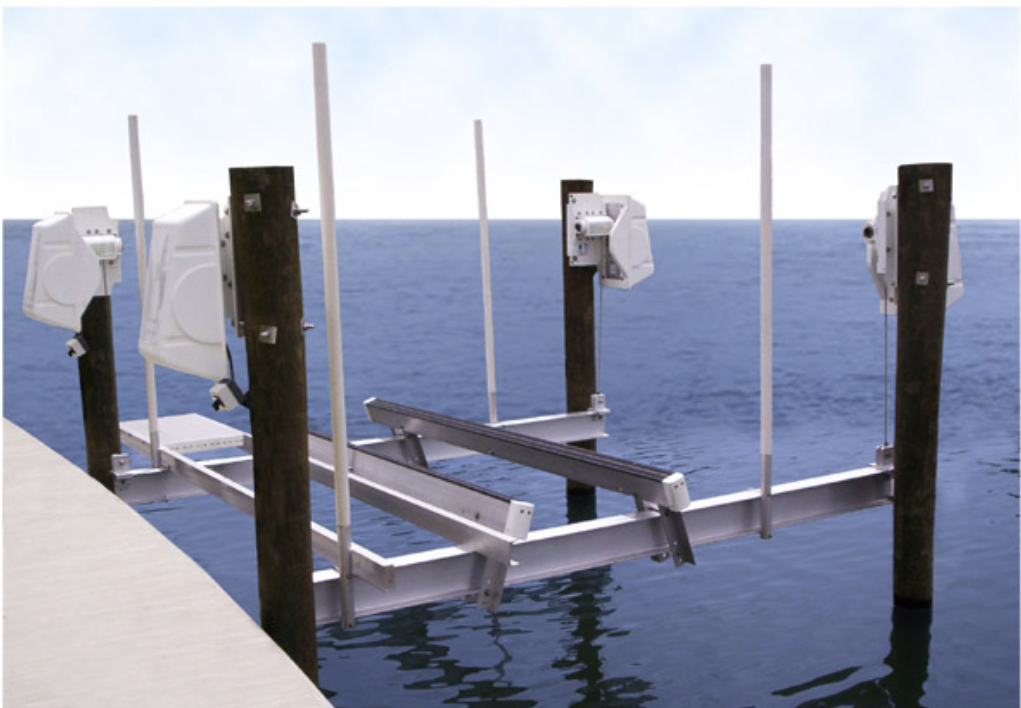 A 4-point lift supports the boat at four contact points along the hull, evenly distributing weight for smaller boats. Best suited for boats up to 25 feet, including smaller runabouts, center consoles, and fishing boats. These lifts are compact, economical, and simple to operate.
